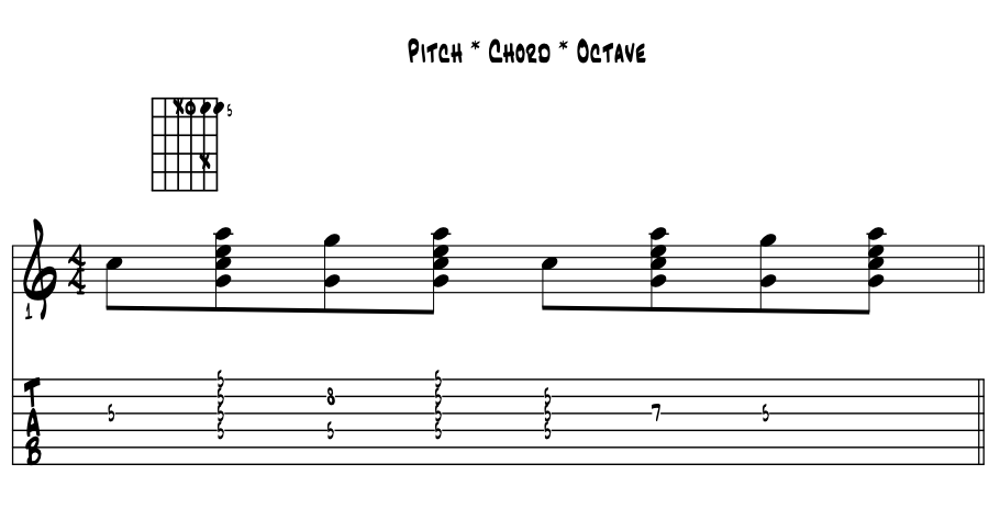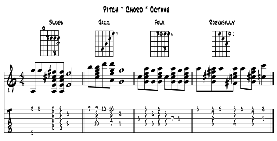 | Cool huh ? Yea makes for heck of puzzle to remember. Here's a few more ideas along these lines of pitch to chord to octave thinking. Example 1a. |