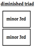 The diminished triad / chords. The diminished chords are so named because they make a plain old, three note minor triad; root, minor 3rd and perfect 5th, sound more minor by diminishing the 5th down by half step, making a diminished triad; root, minor 3rd, diminished 5th, two minor 3rd's intervals stacked atop one another.