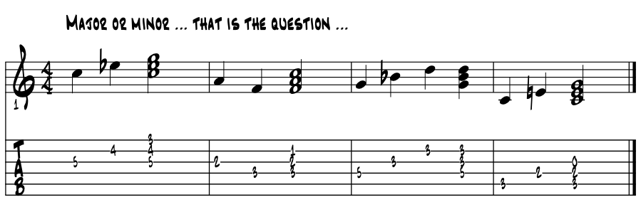 | Hearing the difference? Cool. No? Click again, you'll get it. For in all our musics there's this Yin / Yang quality. Click over to hear an old time 'minor into major' melody. And if all this major / minor theory is a new for you, consider its full discussion and then ace the quiz :) |