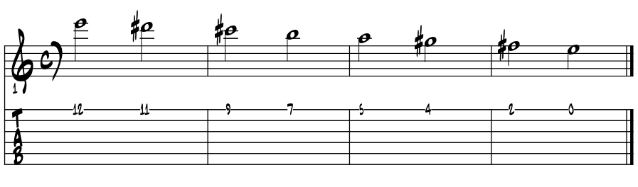 | E chromatic scale | 87b76b65b543b32b21 | all half steps |