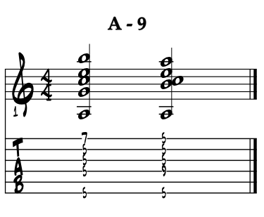 | G dominant 7, 9 | 1 3 5 b7 9 | G B D F A |