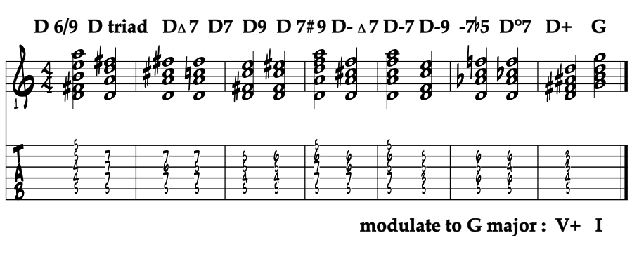 | G major 7, 9 #11 | 1 3 5 7 9 #11 | G B D F# A C# |