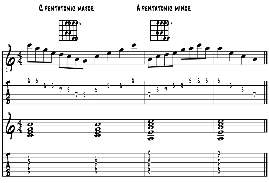 | C pentatonic scale | C | D | E | . | . | G | A | . | C |