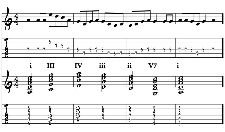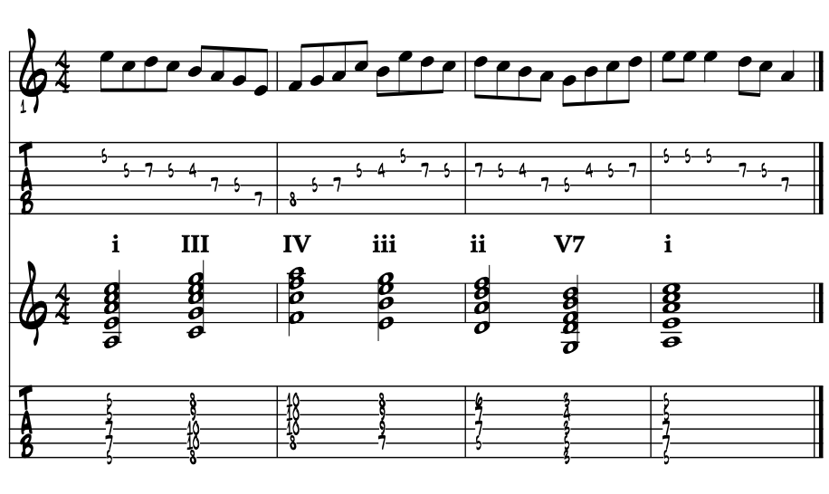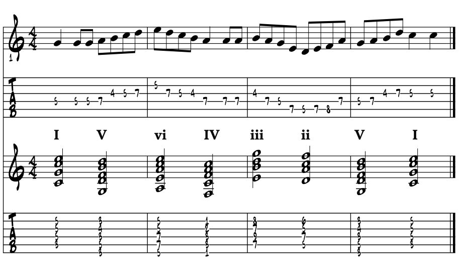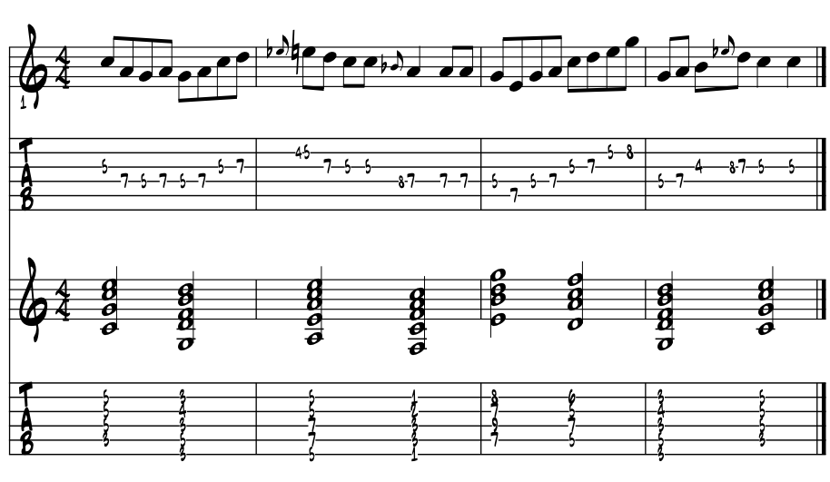 | We've a couple of super nice melodies created with these six pitches, both of which make for nice chord melody arrangements for guitar. Check them out if you're curious and looking for some solo guitar pieces. |