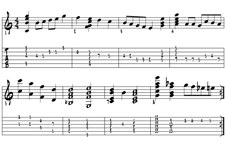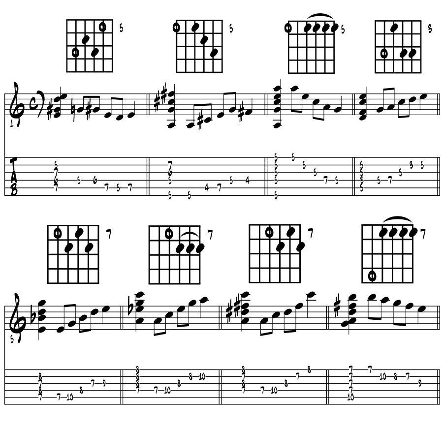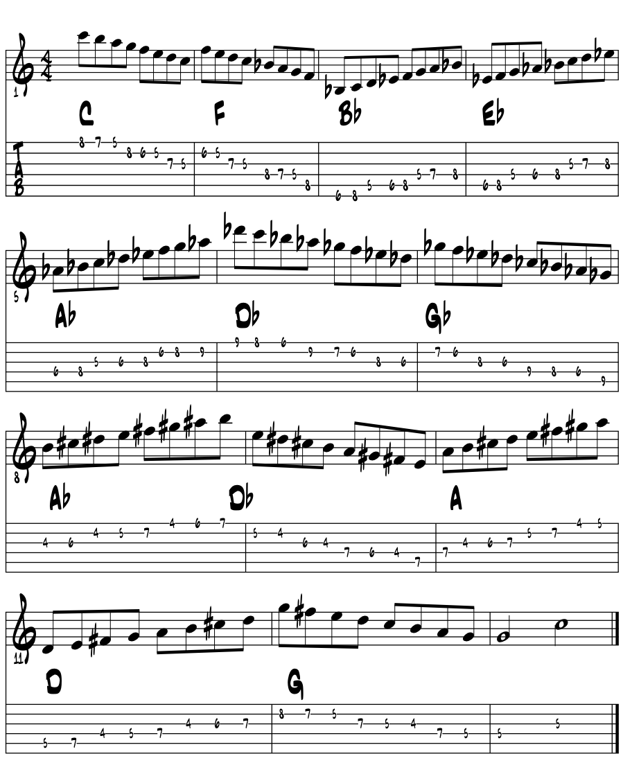 | Scales / arpeggio / chords. Every picture tells a story don't it :) This evolution is a well worn pathway to the whole tamale stand. Example 4. |