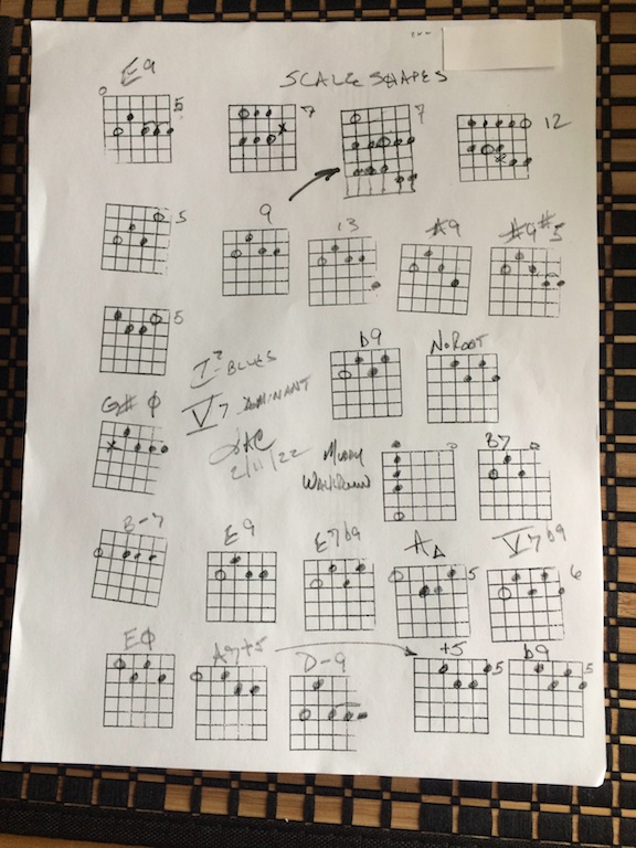 | '20 shapes and down the road.' Depending on what music you're working on, performing etc., getting these 20 root position movable shapes (5 x 4 ) fluid should feed the jazz bulldog for the foreseeable future. Throw in 12 keys and our number jumps to 240 for these shapes and chords to play songs in a chosen key center. If you're cool at this level in whatever way, and are needing additional 'ascensions in understanding' for jazz guitar and general jazz studies. |