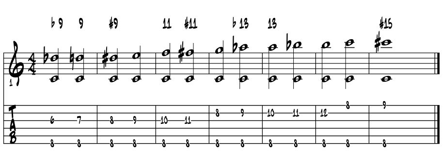 | arpeggio degrees | 1 | 3 | 5 | 7 | 9 | 11 | 13 | 15 |