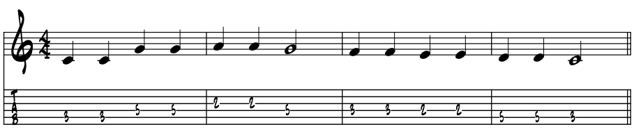 | Reach for the stars. A most familiar melody built on the perfect 5th interval encourages us to reach out to the heavens above. It also could very well be one of the first melodies we ever learned growing up. I often segue into this one when out working, if the little peeps come up to the bandstand to say hi. So often to their great surprise and wonder, that they recognize the tune and can sing along with my playing. Sing this first measure of the perfect fifth interval pitches that represent the penultimate consonance of our musical intervals, from all the way back to antiquity to our modern day equal temper tuning. Example 1. |