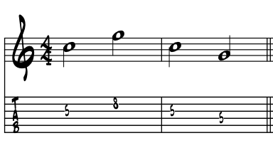 | I'd imagine that anyone who wanted to tear it up with their single line playing would explore these ideas at some point. Folk artists might use these interval study ideas in training their voice. Especially in working on their vocal harmonizing chops. In this next idea, we use the interval of the perfect fifth, and diatonically filter it through the pitches of the Ionian mode / major scale. Example 1d. |