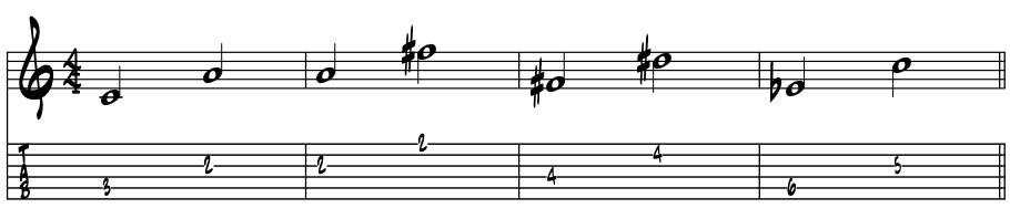| Yep, four leaps to close. Cool. So the inverse intervals match up with perfect closure, and the universe is in order yet again. These closed cycles of pitches can create formats for composition, a framework that we composers can use as an architecture for songs. And while they potentially can become too predictable, we can artistically alter things in unpredictable ways to suit our muse. For as we puzzle our ideas together, shaping their emotional dynamic within the tonal gravity and the aural predictability of each style, we use these sorts of cycles of pitches as architectures to build upon. |