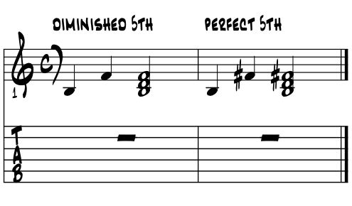 | Locrian also doesn't really have a definitive historical start point. It somehow got wiggled in during the 1700's, completing the modern modal theory of seven we've enjoyed since. As mentioned just above, the fifth of Locrian is diminished. So a diminished fifth in its triad ? Yep. This one property alone can minimize this group's role as a primary or secondary key center in composing. Examine the two fifth's from the root pitch B. Ex. 12a. |