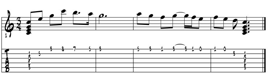 | Right up the triad with some sequence in the second half. Lots and lots more of old time fun Ionian lines included to rote learn in a couple of keys, at least :) |