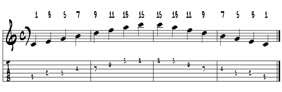 | And again of course, no real surprise here. So take it up an octave and leave it out? Pretty much; Ten, Twelve, Fourteen and Fifteen, all share this obscurity. For while they are crucial intervals in making Americana musics happen, they global be known by their lower number doppelganger :) Please examine the letter pitches and their corresponding numbers of two full octaves thinking C major, followed by their arpeggio. Example 1. |