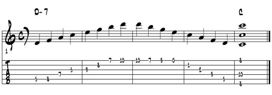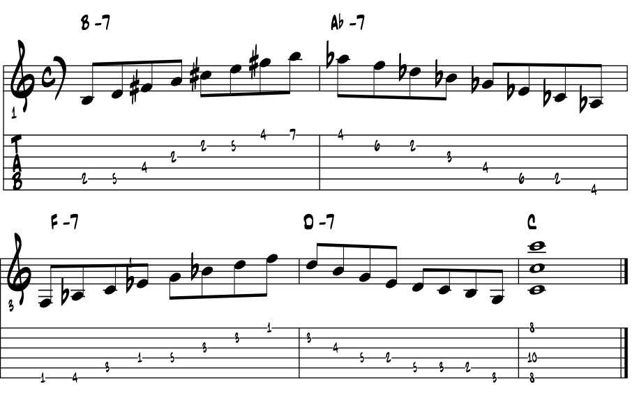 So above the 7th and into the upper tetrachord? Exactly. Some cats term this to 'solo through the changes.' Perhaps in simple form something like this. Example 3. |