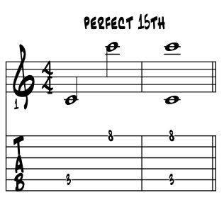 | '15' in a nutshell. Two full octaves and perfect close. In theory, a perfect sounding nut in a perfect math shell. So why 15? In reaching the number fifteen in this section of this theory primer, we have ascended by arpeggio to a point two full octaves above our starting pitch. Have yet to ever seen this number in any chord symbol anywhere in the American songbook. Know that anything theory wise as Fifteen would be the same and more commonly labeled as One and / or Eight. |