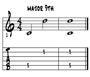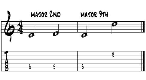 | Theory names: major 9th. Measuring and labeling the major Nine above our root is pretty straightforward. Those in the know will know we've just moving our diatonic second scale degree Two, up an octave. |