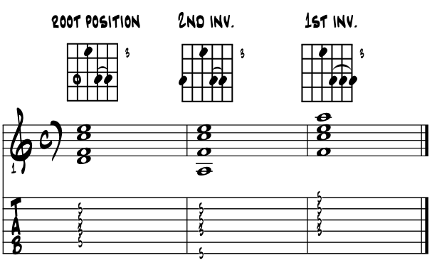 | Voicings. In making these pitches create our next chord shape for guitar, we have to initially leave out the 5th while keeping the rest. Is leaving out the chord's 5th of a voicing problem? No, at this level, the 3rd and 7th tones are more a must, determining whether a chord is major or minor based by its triad, and quality of its 7th. Three and 7th also determine chord type, which in theory, can become a glue of sorts that holds the theory together, giving us a sense of how any chord will function in diatonic and conventional harmonic progressions. |