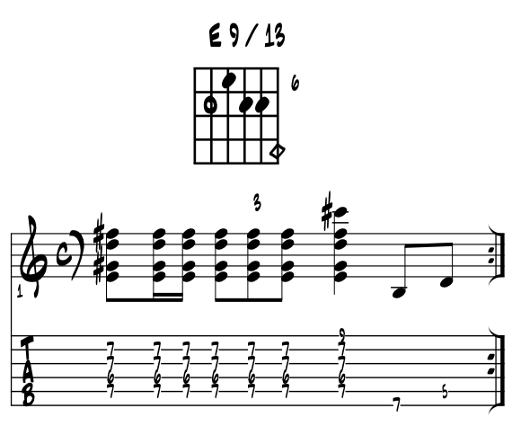 | Know this guitar chord yet ? Cool. No ? Cool, glad to be the one to hip you to these changes. Just find your own ways and rhythms with this chunk, pepper in the 13th, maybe even got a wah wah pedal to step on ... ? |