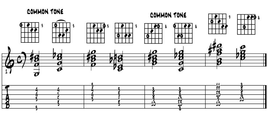 | Often associated with pop music, the major 7th sound is a real transition point in the theory / musical styles. All three of these above mentioned tunes are instantly recognizable from their opening arpeggio licks and surely have generated some serious mailbox loot over the years. |