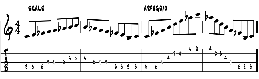 | C harmonic minor arpeggio | C | Eb | G | B | D | F | Ab | C |