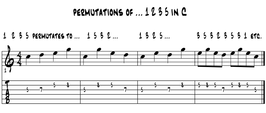 | Permutation by the numbers. If the last bit is cool, then this next idea is the potential game changer. Thinking 'C' major. Example 4a. |