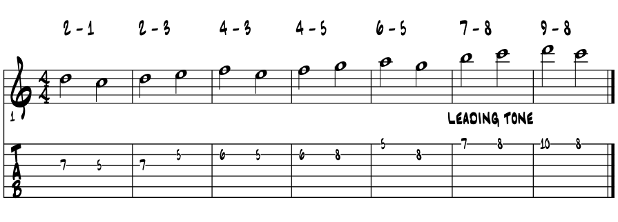 2 ~ 1 or 9 ~ 8 up an octave / 2 up to 3 is stepwise |