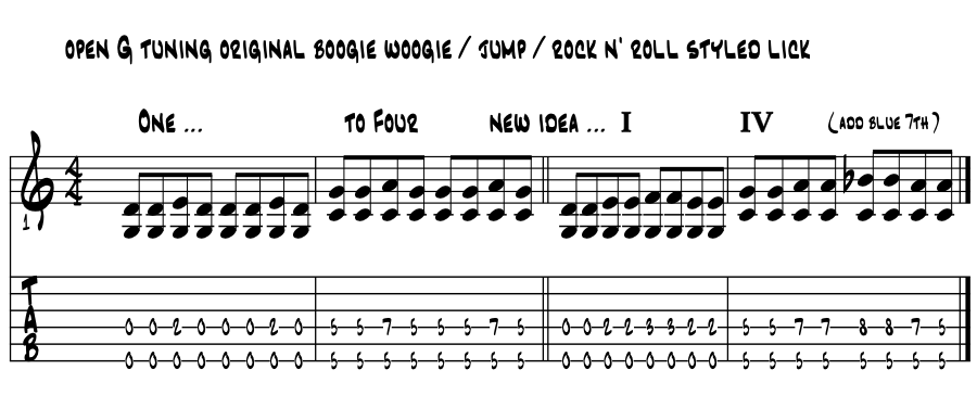 Again wow ! Naa, super wow. So, this potential totally essential boogie woogie jump rock'n roll lick is that easy to play on guitar when the git-thing is 'five stringed and tuned to open G.? Shhh ... :) Might be better not to tell anyone at first, too easy to rock this hard :) If applicable, compose a few new numbas with open 'G.' Or adapt something you already have. Played loud enough, this tuning, and just these few shapes, will rock stadiums globally. What's not to love ? |
